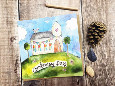 Christening Day Scene Little Church Card- Personalised (One name Only)