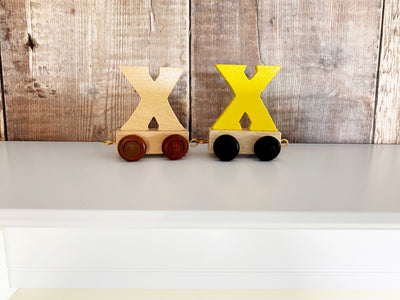 Cute little Train letters which will brighten up any Childs room, available coloured or plain wooden. You can mix and match these but please note the plain letters have natural wood coloured wheels. Please use drop down menu to choose colour.