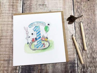 First Birthday Boy Card we can add the year in a little balloon to remind them what year they turned 1. Can be personalised.
