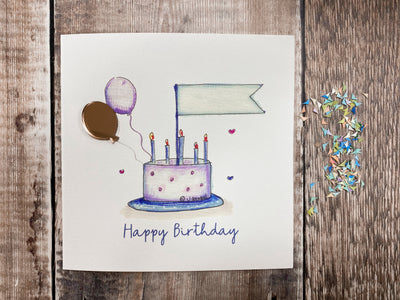 "Happy Birthday Balloon Cake" Laser embellished Card - Personalised