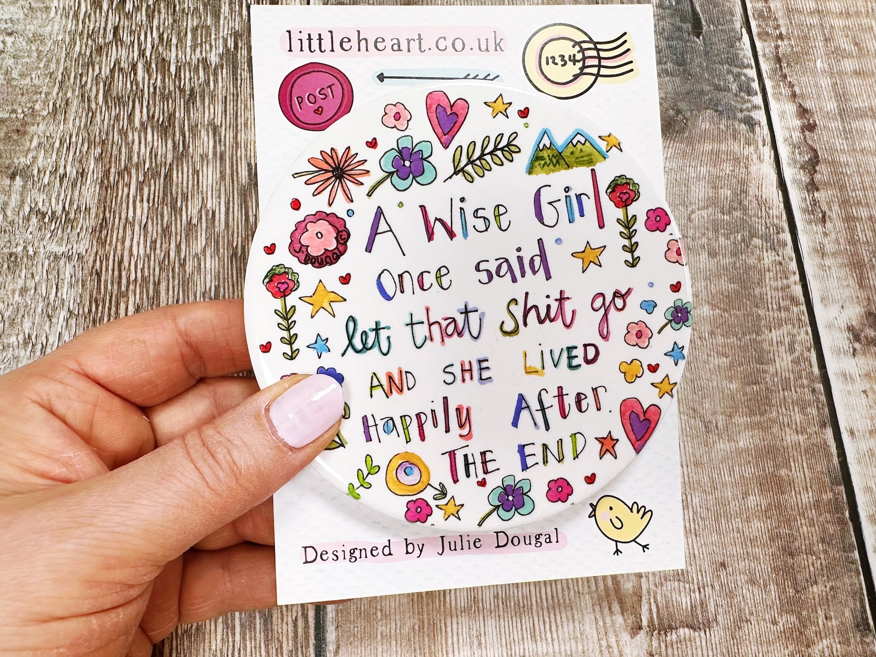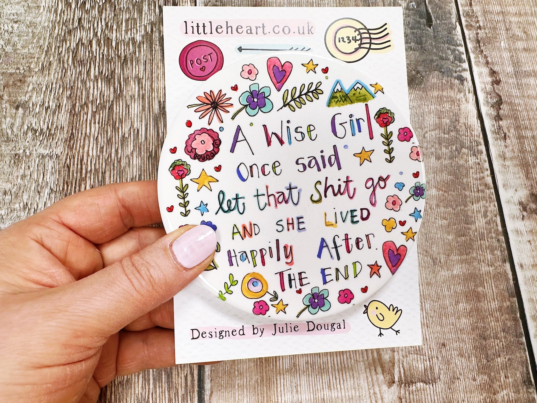 Comes with a little backing card and cello for easy gifting.