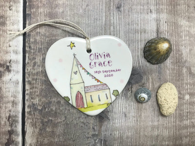 Cute little heart measures approx 8cm x 7cm. Has a little string for hanging. Perfect for Christening or Confirmations