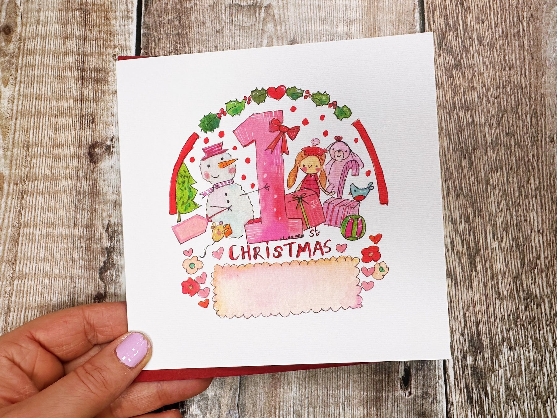 "First Christmas Baby Girl Toys" Christmas Card - Personalised