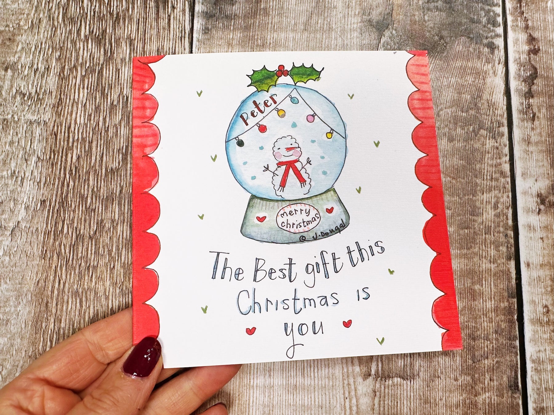 Gorgeous card with a Christmas decoration included. We do not write inside the cards.