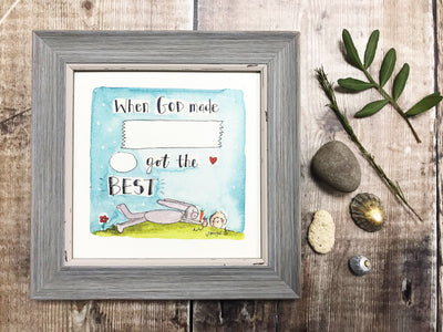 Cute little print in frame which can be personalised, they measure approximately 15.5cm. Each picture is personalised if you wish and they are all designed by Julie Dougal.