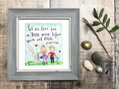 Cute little print in frame which can be personalised, they measure approximately 15.5cm. Each picture is personalised if you wish and they are all designed by Julie Dougal.