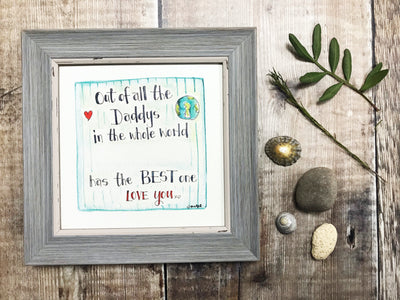 Cute little print in frame which can be personalised, they measure approximately 15.5cm. Each picture is personalised if you wish and they are all designed by Julie Dougal.