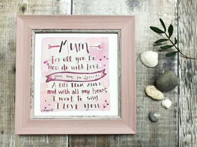 Cute little print in frame which can be personalised, they measure approximately 15.5cm. Each picture is personalised if you wish and they are all designed by Julie Dougal.