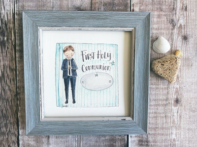 Cute little print in frame which can be personalised, these measure approximately 15.5cm to 18cm depending on the frame you choose. All pictures can be put in any frame, you can choose which one you like. Each picture is personalised if you wish and they are all designed by Julie Dougal.