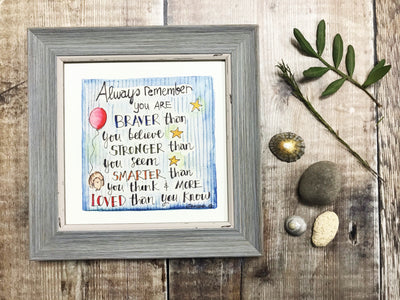 Cute little print in frame which can be personalised, they measure approximately 15.5cm. Each picture is personalised if you wish and they are all designed by Julie Dougal.