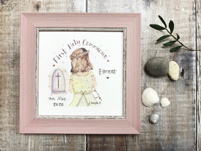 Framed Print Girl "First Holy Communion Praying" can be personalised