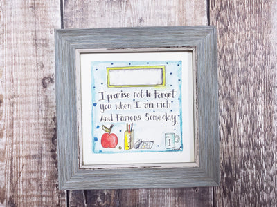 Cute little print in frame which can be personalised, these measure approximately 15.5cm to 18cm depending on the frame you choose. All pictures can be put in any frame, you can choose which one you like. Each picture is personalised if you wish and they are all designed by Julie Dougal.