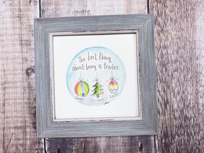 Cute little print in frame which can be personalised, these measure approximately 15.5cm to 18cm depending on the frame you choose. All pictures can be put in any frame, you can choose which one you like. Each picture is personalised if you wish and they are all designed by Julie Dougal.