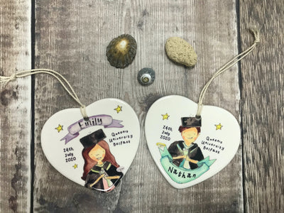 Graduation Dark Hair Ceramic Heart
