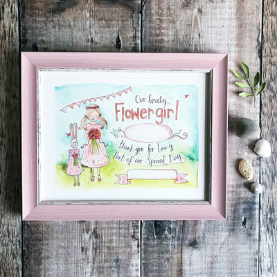 We can add the name of the Flowergirl, the date and who it's from. The Flowergirl has blonde hair as standard so please let us know if you want it darkened.