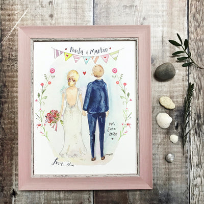We can add 2 names and a date to this design. The girl and boy both have light hair so we can darken them if required.