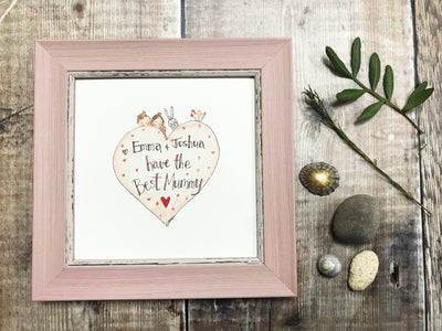 Cute little print in frame which can be personalised, they measure approximately 15.5cm. Each picture is personalised if you wish and they are all designed by Julie Dougal.
