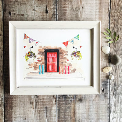 We can add a surname to this print and the names of the family. If you don't want a surname you can put Our Family or an address. Green Door fits a door number as well or alternatively we can just put a heart