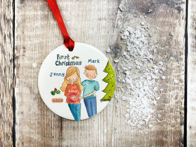 Bump's First Christmas Couple Ceramic Bauble