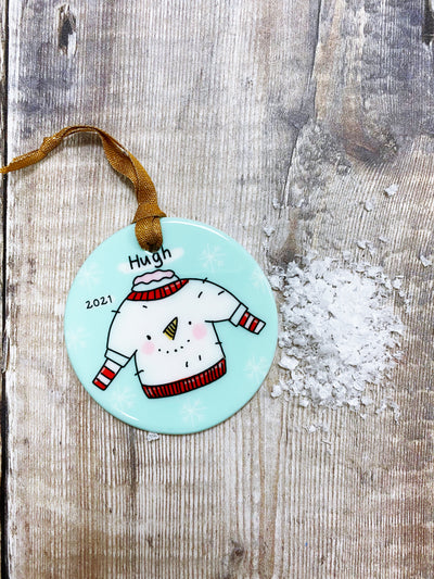 Snowman Jumper Christmas Ceramic Bauble