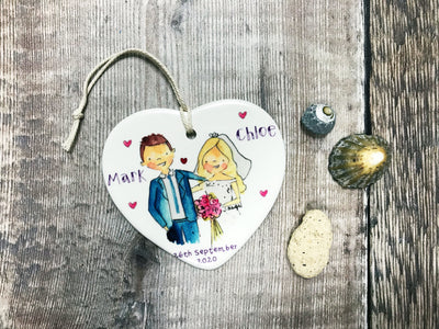 Wedding Couple Blonde Girl, Man Dark Hair Ceramic Heart