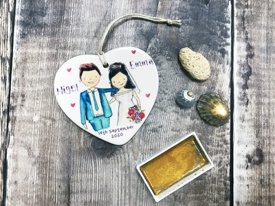 Wedding Couple Dark Hair Bride Ceramic Heart
