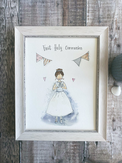First Holy Communion Girl, she comes with blonde hair as standard please let us know if you require us to darken the hair.