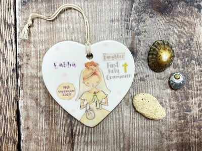 Cute little heart measures approx 8cm x 7cm. Has a little string for hanging. This girl has Medium dark hair it cannot be changed.