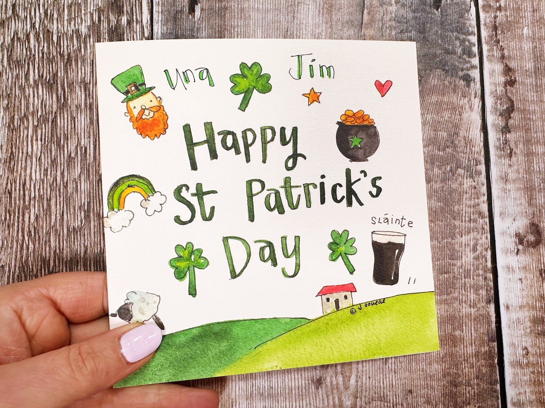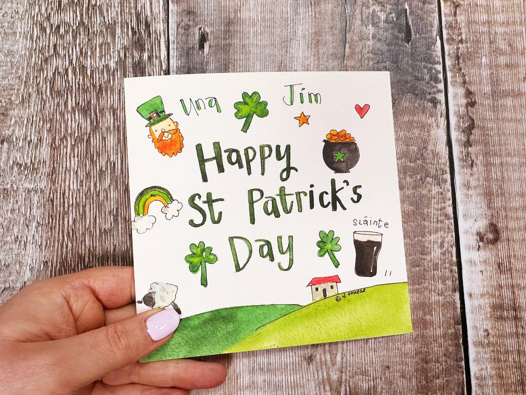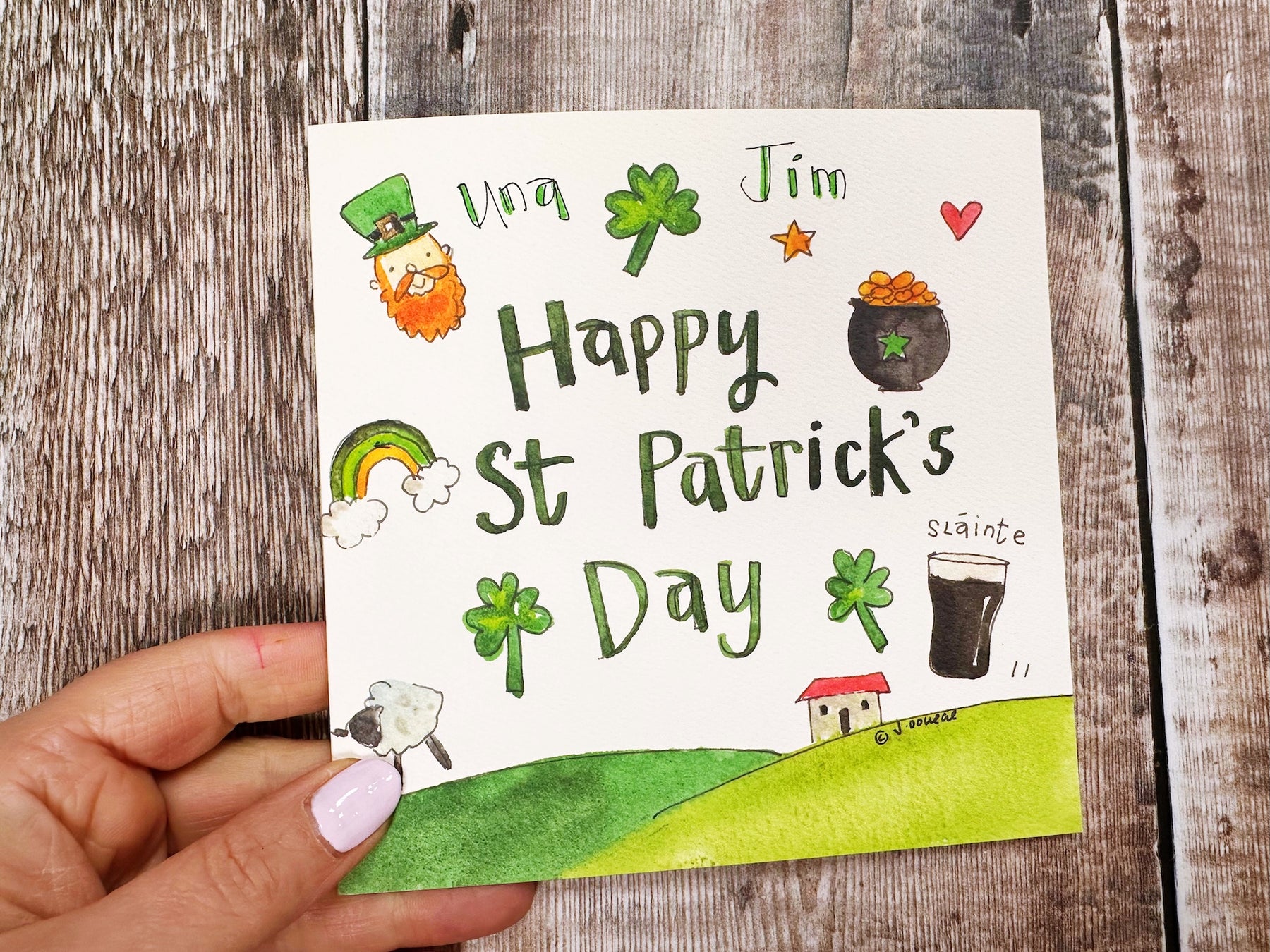 Celebrate St Patrick's Day with this cheerful personalised greeting card. Perfect for sending warm wishes to loved ones, this festive card adds a special touch with custom personalisation. Ideal for friends, family, or colleagues who appreciate a thoughtful, themed greeting. Make their day extra special this March 17th.