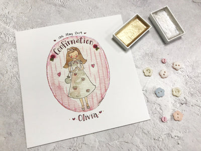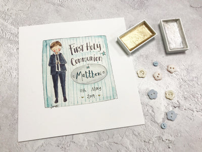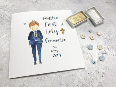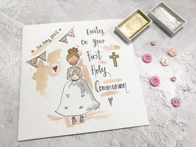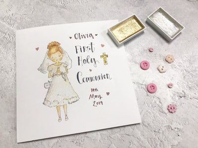 Gold Cross, First Holy Communion, Girl Card - Personalised