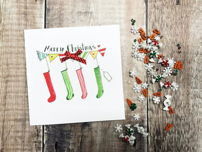 "First Christmas Stockings Mummy and Daddy" Christmas Card - Personalised