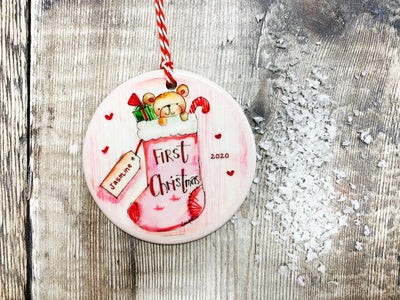 Cute little Ceramic disc for hanging, a lovely little keepsake. Comes on a little backing card.